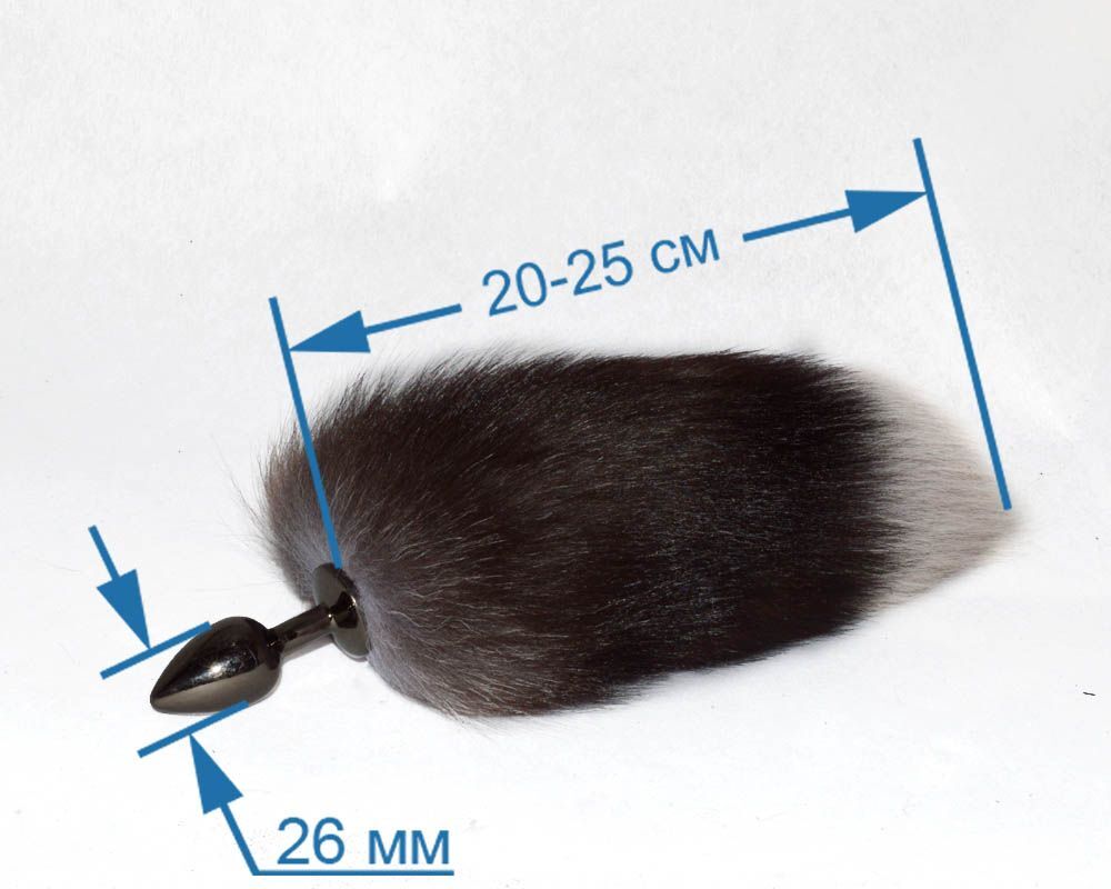 Анальная пробка с натуральным хвостиком (длиной 20-25 см). Пробка небольшого диаметра, никель. Длина хвоста - 20-25 см.