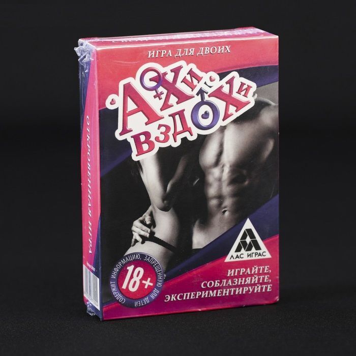Хотите провести незабываемый вечер в компании любимого человека? Игра «Ахи вздохи» станет вашим проводником в мир наслаждений и удовольствий. Добавьте в отношения новых эмоций и великолепных ощущений! С чего начать? Настройтесь на игру! Выберите свободный вечер и создайте комфортную атмосферу для вас обоих. Можно использовать вино, свечи и всё, что вам подскажет сердце. Что вам предстоит? Вас ждут интимные вопросы, увлекательные фанты с разными способами поцелуев, а также пикантные откровенные задания и ролевые игры. В общем, вам надолго запомнится этот вечер! Играйте и получайте удовольствие! Вы можете скачать инструкцию с подробными правилами игры, а особые ценители и любители экспериментировать могут играть по своим правилам и получать истинное наслаждение. В комплекте: 64 карты.