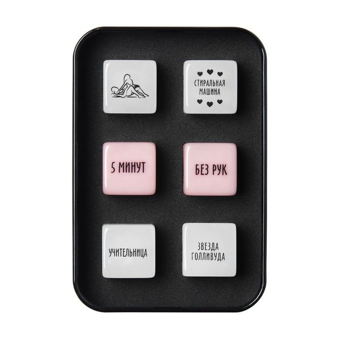 Окажитесь в плену непреодолимого желания! Представляем вам серию премиальных эротических игр в жестяных коробочках. Хотите воплотить свои самые смелые фантазии и желания и получить невероятное удовольствие? Тогда этот набор, то, что вам нужно. Внутри вас ждут пикантные атрибуты для секс-игр: 6 пластиковых кубиков.Как пользоваться кубиками? Очень просто! каждого кубика своя задача:первый определит роль для неё,второй - для него,третий укажет место,четвёртый подскажет, что нужно делать,пятый укажет, как именно,шестой обозначит время ласки.Что с этим делать? Да всё, что угодно, лишь бы это приносило вам удовольствие!Внутри вы найдёте:4 неоновых кубика,2 розовых кубика. В комплекте: 4 неоновых кубика, 2 пластиковых кубика.