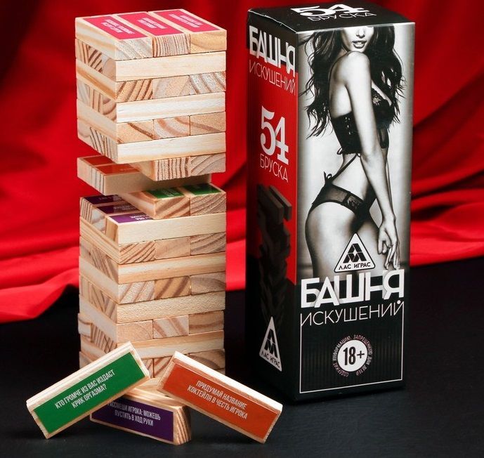 Устройте вечеринку, будоражащую ваше воображение! Постройте падающую башню, позовите друзей и выполняйте пикантные задания! В наборе вы найдёте 54 деревянных бруска с фантами, способными поднять настроение каждому! «Башня искушений» — залог общения и раскрепощения! Неожиданные задания разнообразят любой праздник! Каждое написано на фоне определённого цвета (всего их шесть). Перед началом игры распределите цвета между игроками. Постройте башню и вытягивайте бруски так, чтобы она не упала. Тот, кто вытянул деталь, зачитывает задание и выполняет его с тем игроком, чей цвет указан на бруске. Вас ждут веселье, много смеха и пикантных подробностей — устоять просто невозможно! Победит тот, кто вытягивал последним до того, как «постройка» развалится! Возьмите Башня искушений : на день рождения, вечеринку, встречу с друзьями. В набор входят 54 деревянных бруска с фантами (7 х 1,8 х 2,2 см).