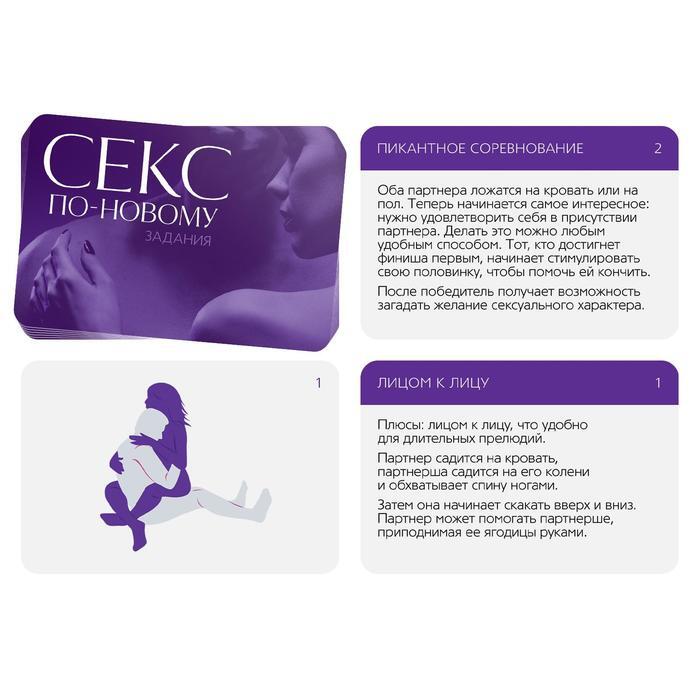 Откройте новые грани наслаждения! Эта игра поможет вам разнообразить сексуальную жизнь и подарить друг другу совершенно новые эмоции! Что нужно делать? Разделите карты на две колоды: «позы» и «задания». «Задания»: Вытягивайте карточки из этой колоды, зачитывайте их содержание и воплощайте его в жизнь. «Позы»: Вытягивайте карточку из этой колоды, смотрите на изображение, читайте описание и воплощайте данную позу в жизнь. Вы можете остановиться только на одной колоде или сначала попробовать одну, а потом другую. А если есть желание поэкспериментировать, комбинируйте карточки между собой. В комплекте: 50 карт.