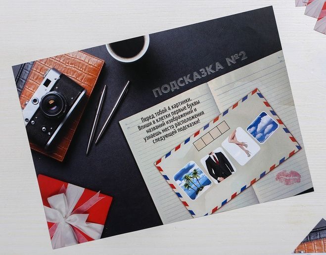 Скоро день рождения мужа и хочется, чтобы он прошёл ярко и незабываемо? Тогда представьте: вы вручаете письмо, а в нём… задания, шифры и головоломки, которые приведут к сюрпризу. Такое поздравление запомнится надолго! Что нужно делать? Виновнику торжества предстоит справиться со множеством головоломок. Правильно разгадывая шифры, он будет идти по следу, который приведёт к приятному сюрпризу. Всё, что нужно - это правильно расположить все подсказки: под подушкой, в карманах одежды, под стулом и в других местах вашей квартиры. Следуйте правилам, и тогда у вас всё получится! В комплекте: праздничное письмо, 12 подсказок, правила.