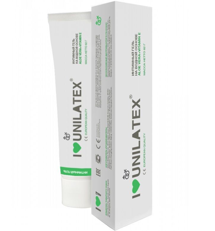 Интимный гель на водной основе Unilatex Gel Aloe Vera + Vitamin E. Содержит натуральный сок алоэ. Не имеет запаха. Совместим со всеми видами латексных изделий. Гипоаллергенный, растворим в воде, не оставляет пятен, не содержит токсичных компонентов, без пузырьков воздуха. Комплекс Алоэ Вера+Витамин Е оказывает смягчающее и восстанавливающее действие на кожу.