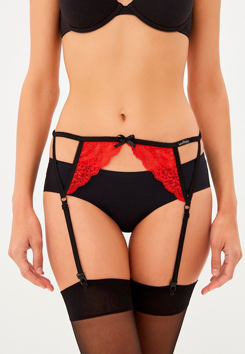 Горячее сочетание цветов обольстит даже самого искушенного партнера. Добавь красной помады и сразишь наповал! Трусики и чулки в комплект не входят!