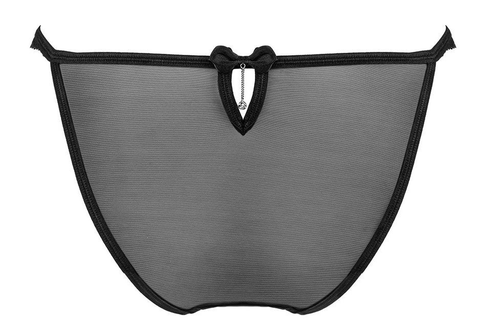 Трусики-панти Ivannes спереди выполнены из кружева, спинка из прозрачной вуали, с каплевидным вырезом, украшенным бантиком и подвеской.