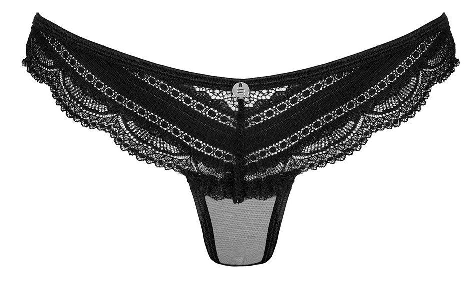 Трусики-панти Ivannes спереди выполнены из кружева, спинка из прозрачной вуали, с каплевидным вырезом, украшенным бантиком и подвеской.