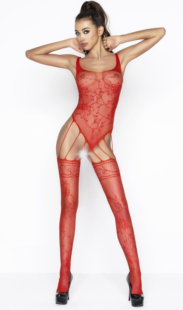 Изысканный комбинезон с узором в виде роз и веточек - оригинальная модель, которая отлично сидит как на худышках, так и на женщинах с формами. Ажурная сетка плотно облегает силуэт, превращаясь во вторую кожу. Смелые вырезы на самых пикантных участках заставляют фантазию разыграться, а возбуждение - накрыть вас мощной волной.