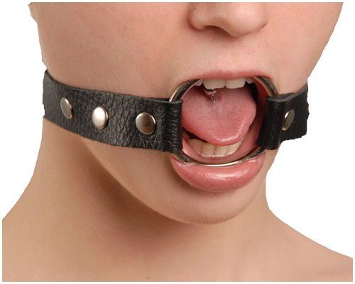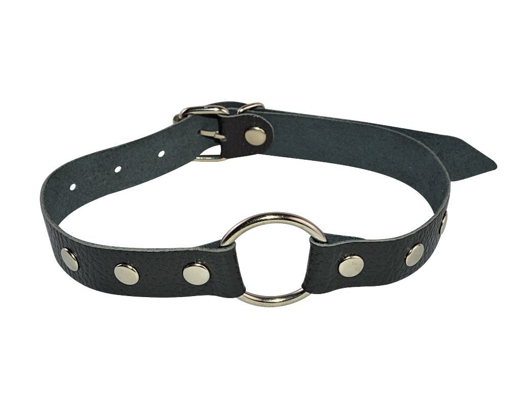 Кляп-кольцо на черных кожаных ремешках