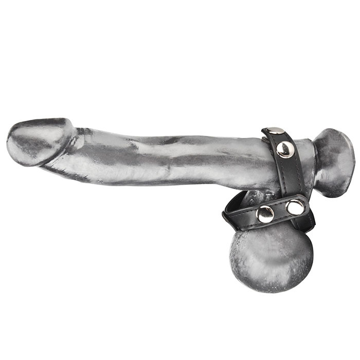 Эрекционное Т-образное кольцо из качественной искусственной кожи, зажимающее пенис и мошонку одновременно, а также разделяя яички. Подобное кольцо предотвращает сокращение мошонки во время эякуляции, стимулирует яички, а также пролонгирует эрекцию, добавляет дополнительный объем пенису, утолщая вены, и усиливает оргазм. Диаметр можно варьировать от 3,5 см. до 5 см. Упаковка: Блистер.