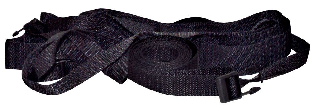 Комплект для связывания. В комплекте 2 черные ленты (длина каждой 320 см), которые соединяются под матрасом с лентами (длина 180 см) с подбитыми лентами для рук и ног, которые регулируются ремнем.