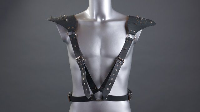 Сбруя из натуральной кожи ручной работы. Кожаные ремни плотно охватывают торс, в выгодном свете представляя вашу мускулатуру. Необычные эполеты, декорированные металлическими шипами, являются особой изюминкой данной модели. Это изделие позволит вам разнообразить свою сексуальную жизнь и внести в нее новые краски и образы.