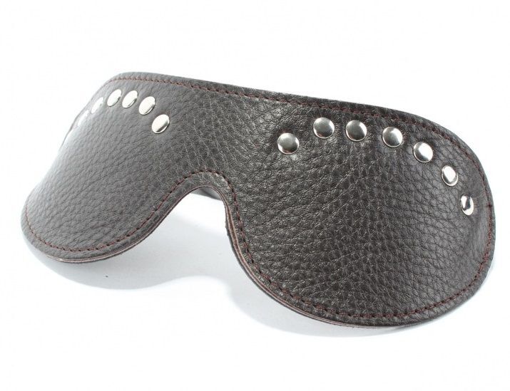 Маска из натуральной коричневой кожи отличного качества. Декор холнитенами в виде ресничек добавит изюминку в вашу игру. Обратная сторона выполнена из черной гладкой кожи. Вы можете менять свой образ по вашему желанию. Благодаря эластичной резинке, размер универсальный. Ширина - 7 см. Ширина резинки - 2 см.