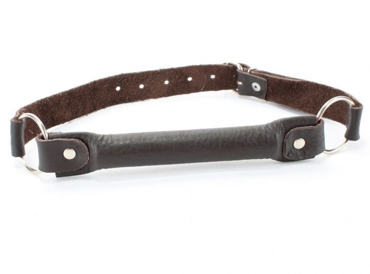 Кляп темно-шоколадного цвета из дерева, обтянутого натуральной кожей, декорирован двумя металлическими кольцами по бокам. Пряжка сзади позволяет подобрать нужный размер, обеспечивает надежную фиксацию и комфорт. Подойдет на обхват от 45 до 60 см. Пикантный аксессуар, который разнообразит Вашу БДСМ игру! Длина трензеля - 15 см., диаметр - 2 см.