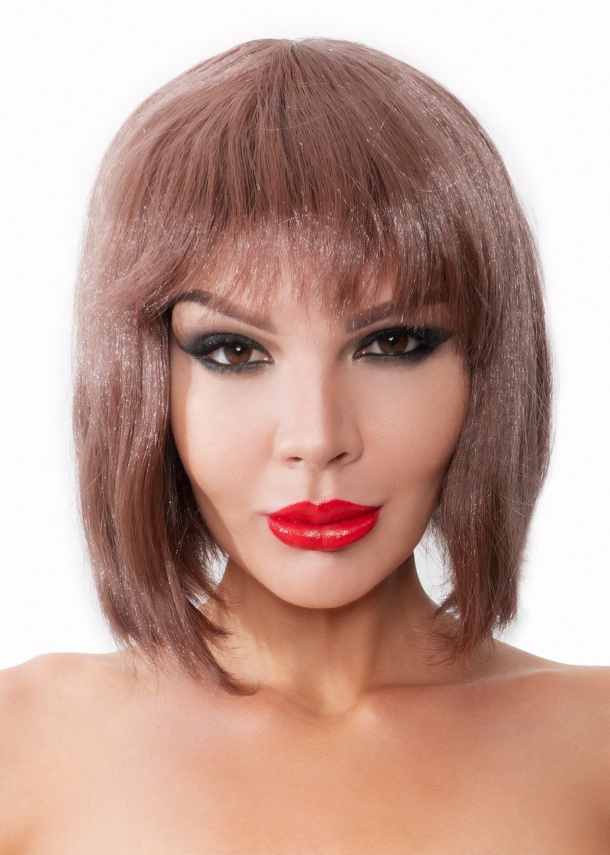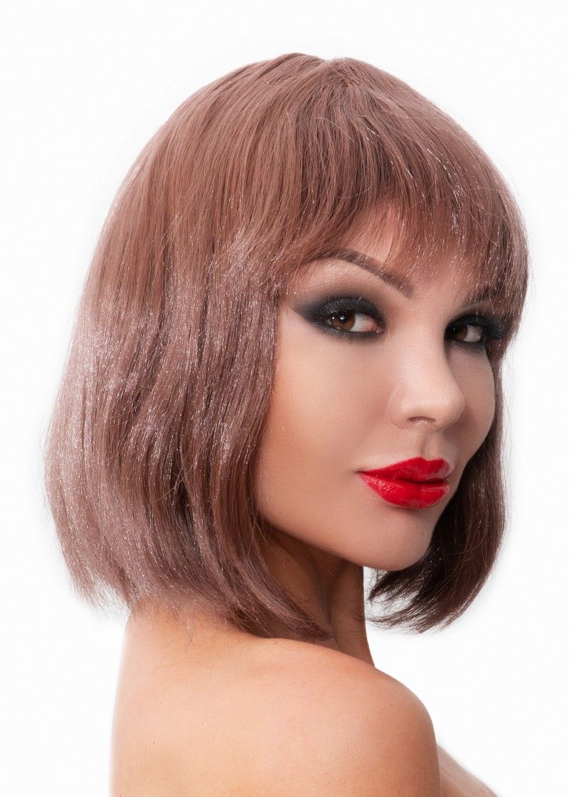 Коричневый парик-каре с челкой