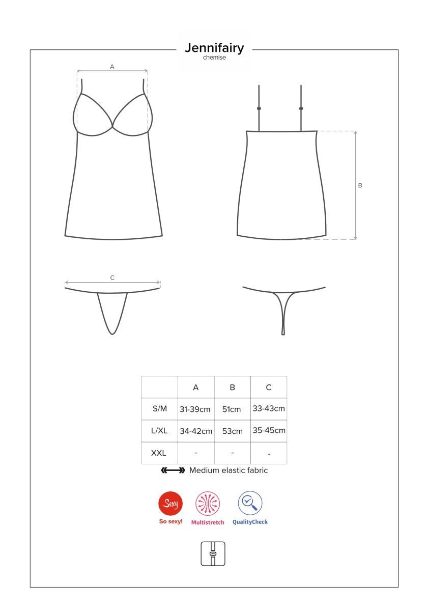 Женская полупрозрачная сорочка Jennifairy выполнена из эластичного материала с уникальным орнаментом. В комплекте: сорочка и трусики-стринги.