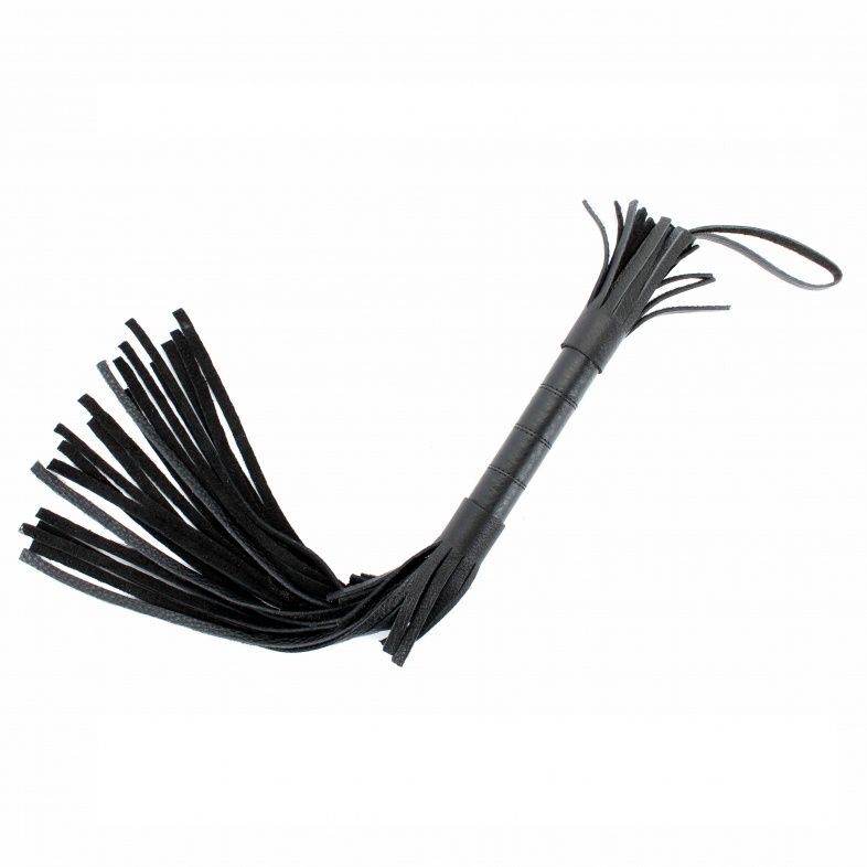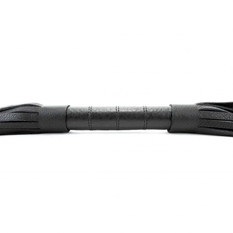 Аккуратная черная плетка, изготовленная из натуральной кожи. Имеет жесткую ручку, также покрытую кожей. Имеется петля для удобного использования плети. Плеть разогреет страсть в любой БДСМ игре. Длина ручки - 18 см. Длина хлыстов - 27 см.