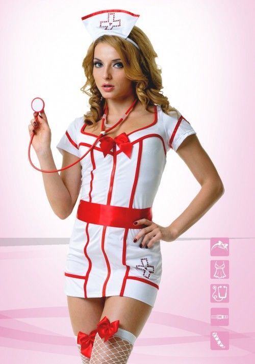 «Дышите! Ну, дышите же!»… Эту фразу доктору Сьюзи придётся повторить не раз, исследуя спину или грудь пациента стетоскопом. Потому как у мужчины в её обществе перехватит дыхание - от восторга и сексуального желания! Облегающее бело-красное платьице вкупе с чулочкам и прочими аксессуарами вмиг превратит вас в обворожительную Сьюзи. Увидев вас в этом образе, любимый обязательно захочет быть безнадёжно больным… В комплекте: платье, головной убор, пояс, стетоскоп, чулки.