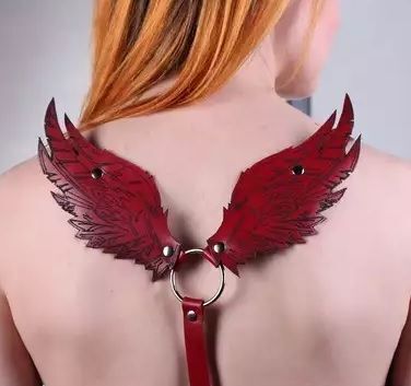 Портупея из натуральной кожи Крылья . Сзади портупея украшена шикарными резными крыльями. Размер универсальный, ремни регулируются застежками пряжками.