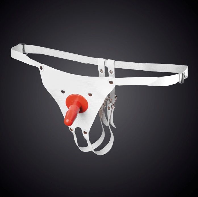 Изготовлены из натуральной кожи. При производстве используется никелированная фурнитура. Размер регулируется ремешками, которые крепятся на бёдрах (от 42 до 50 размера). В комплект входит съёмный пластиковый плаг для насадок. Идеально подходит для использования, как мужчиной, так и женщиной. Длина плага - 6,8 см.