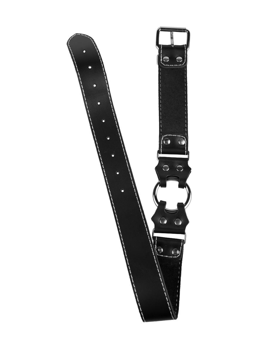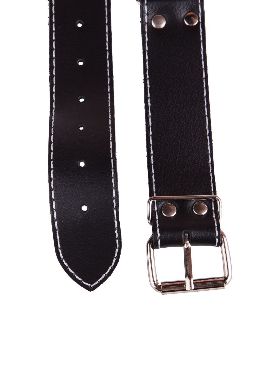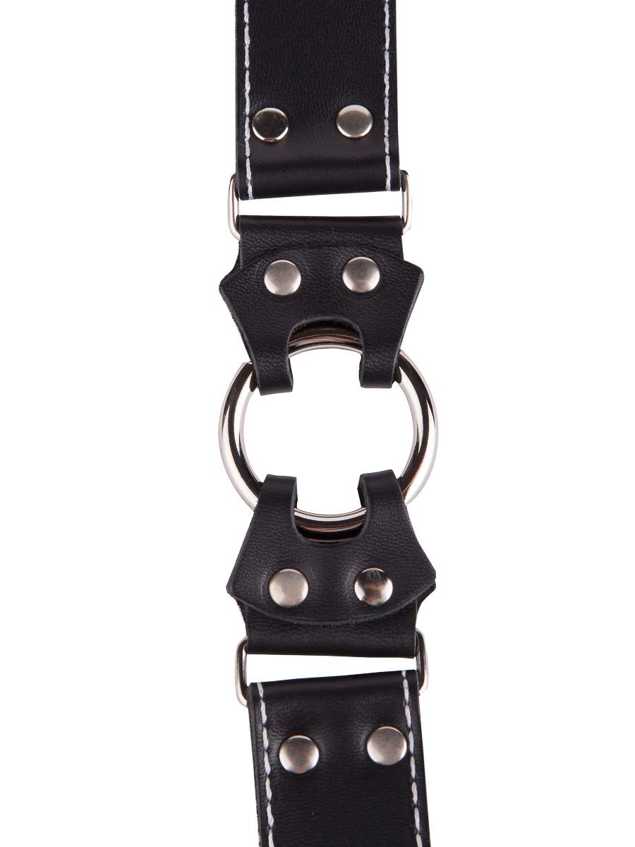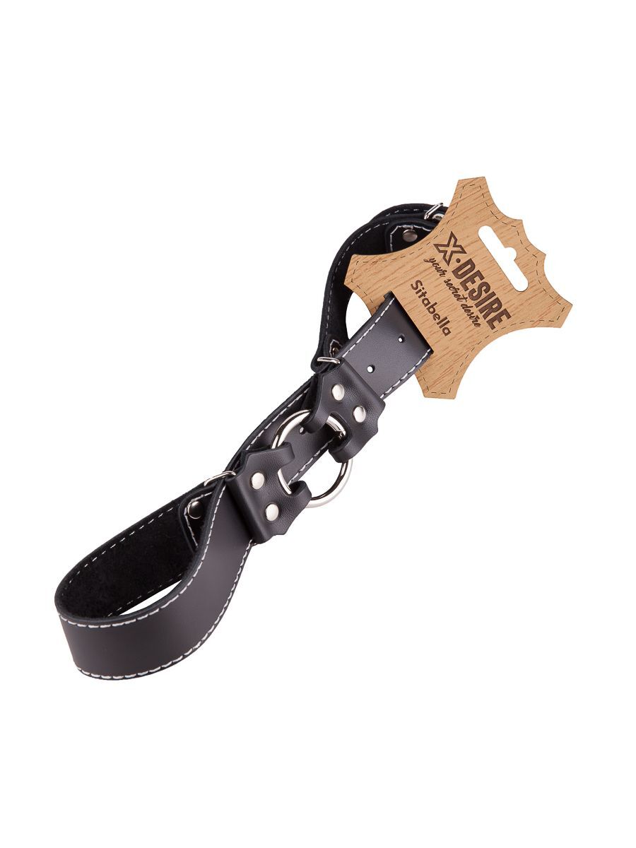 Кожаные ременные наручники ограничат подвижность секс-партнёра фиксацией рук. Оригинальная конструкция наручников имеет вид восьмёрки, которую образуют ремешки из натуральной толстой чёрной кожи. Регулировка размера обеспечивают металлические пряжки. В центре наручников располагается большое кольцо для фиксации к чему-либо. Вся используемая металлическая фурнитура имеет хромированное покрытие.