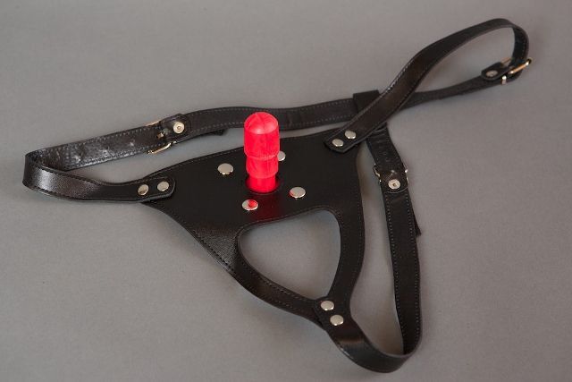 Трусики выполнены из натуральной кожи черного цвета. При помощи ремешков можно регулировать размер трусиков. К данной модели подойдет любая насадка системы Harness.