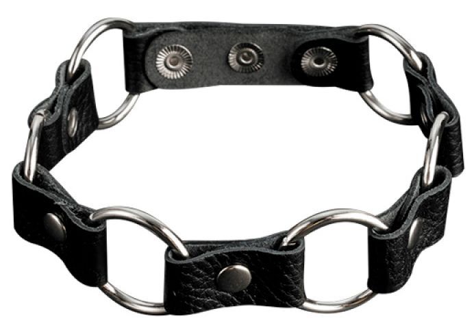 Кожаный черный ошейник с кольцами