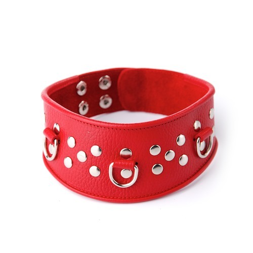 Кожаный красный ошейник с велюровой подкладкой