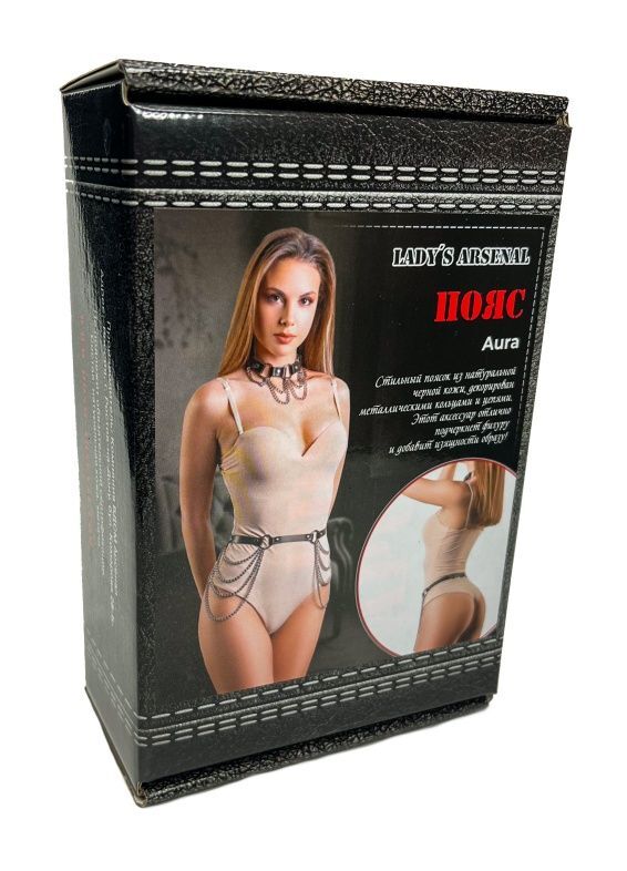 Стильный поясок из натуральной черной кожи, декорирован 4 металлическими кольцами, к которым крепятся цепочки. Благодаря пряжке размер удобно регулировать. Данный аксессуар отлично подчеркнет фигуру и добавит изящности образу. Ширина ремешка - 1,5 см.