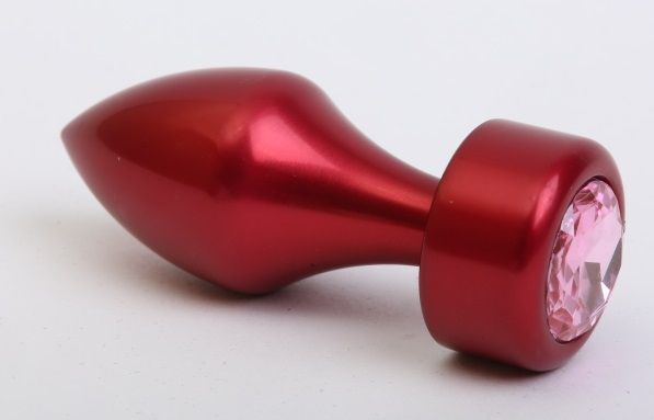 Красная анальная пробка с широким основанием и розовым кристаллом - 7,8 см.
