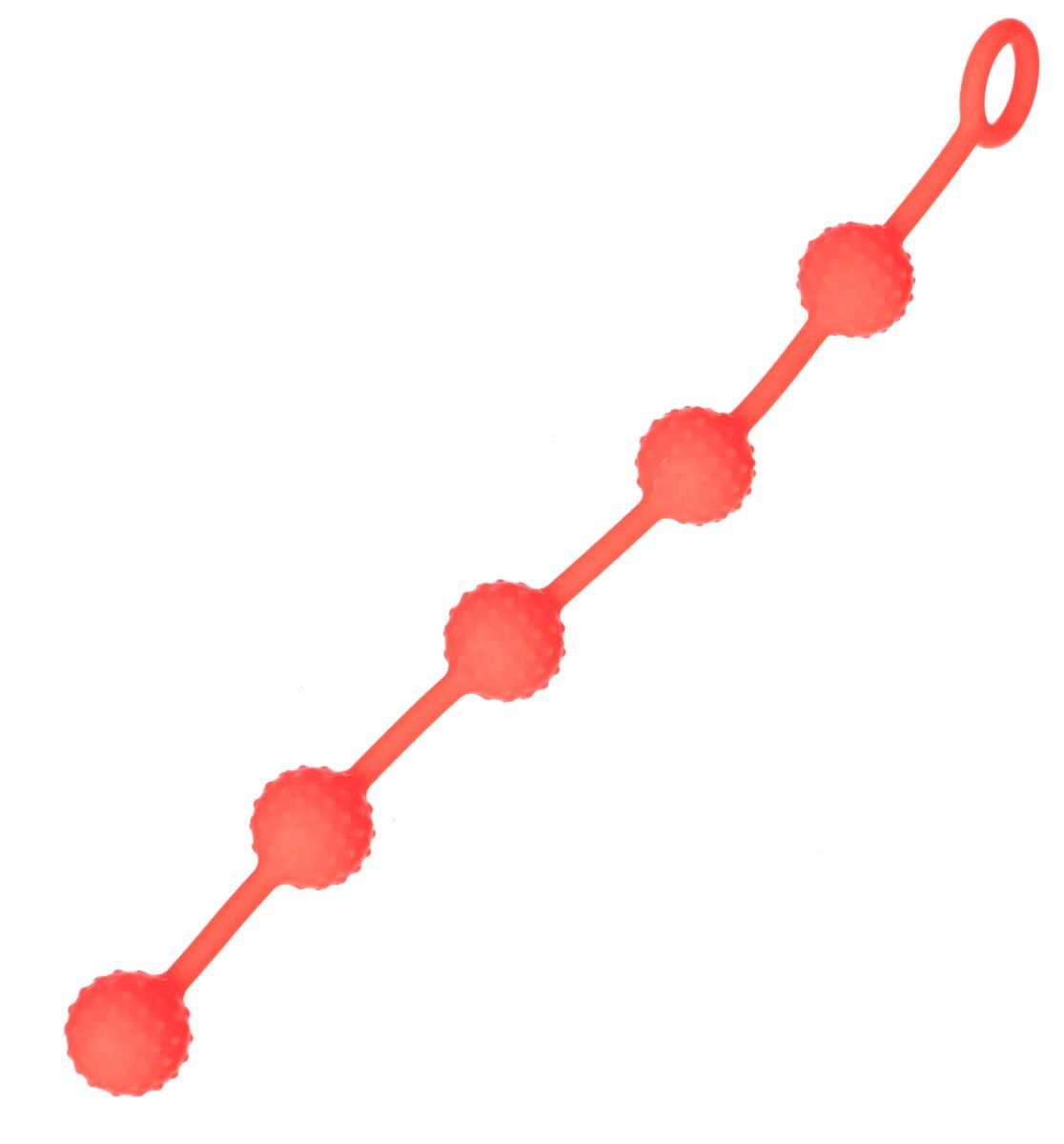 Красная анальная цепочка с кольцом. Пять шариков подарят чувственные ласки ануса.