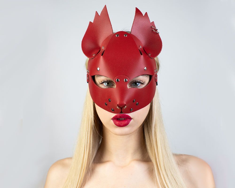 Маска изготовлена из натуральной кожи. Регулируется при помощи резинки и пластиковой пряжки.