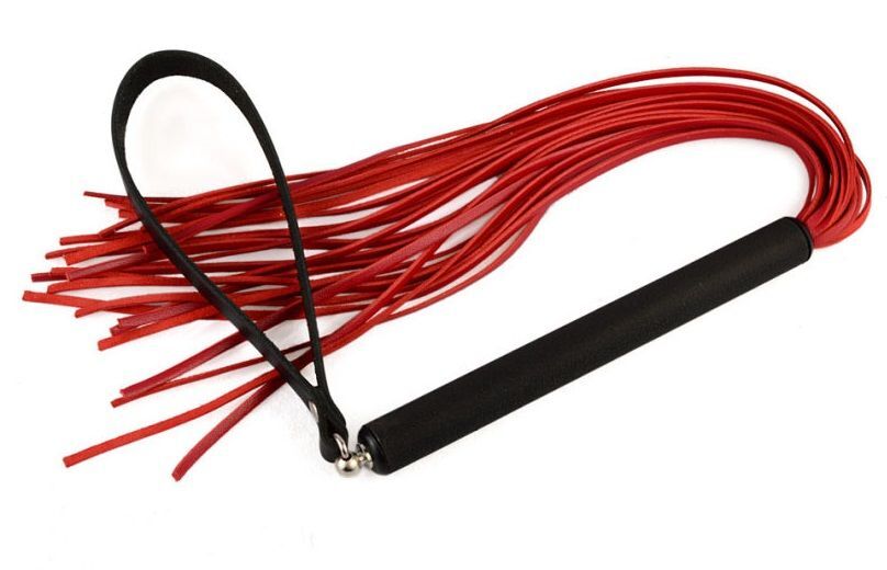 Красная кожаная плеть MIX с черной рукоятью - 47 см.