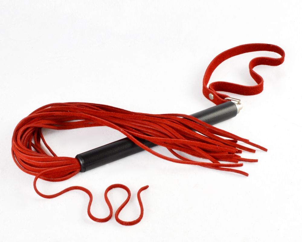 Небольшая плеть с хвостом из тонких лент натуральной велюровой кожи. Ударная часть плети имеет роскошный глубокий чёрный цвет. Металлическая рукоять цилиндрической формы Длина рукояти - 15 см.