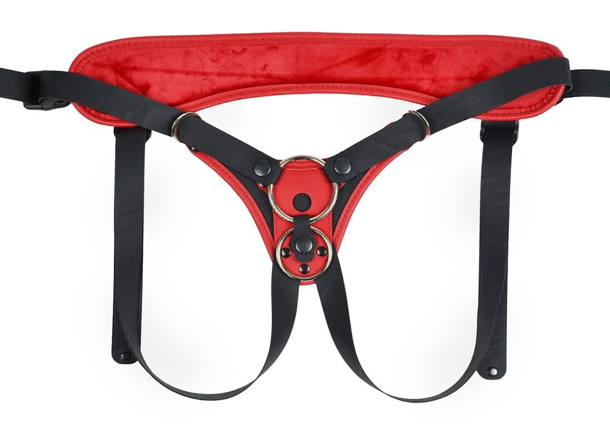 Перед вами третье поколение универсального классического пояса (страпона, харнесса), снабженного передней частью с возможностью установить 2 типа коннекторов (фиксаторов). Акцент сделан на стильном внешнем виде, максимальном комфорте, атравматичности, точности и удобству регулировки. Добавлен бандаж. Бархатный влагопоглощающий внутренний слой, применение экокожи, кожаные стропы, бейка по краю многослойной основы изделия - дополняют картину обновления конструкции. Можно зафиксировать кольцом любой фаллоимитатор на присоске (2 кольца в наборе комплекта с разными диаметрами). Для смены колец – необходимо расстегнуть кнопки ремней вокруг отверстия и поставить подходящее по размеру кольцо. Коннектор (бобышка–соединитель) легко извлекается, разборный, состоит из двух частей, соединяющихся резьбой. Универсальность стыковочного узла позволяет использовать абсолютное большинство насадок, входящих в ассортимент магазинов и продающихся отдельно.