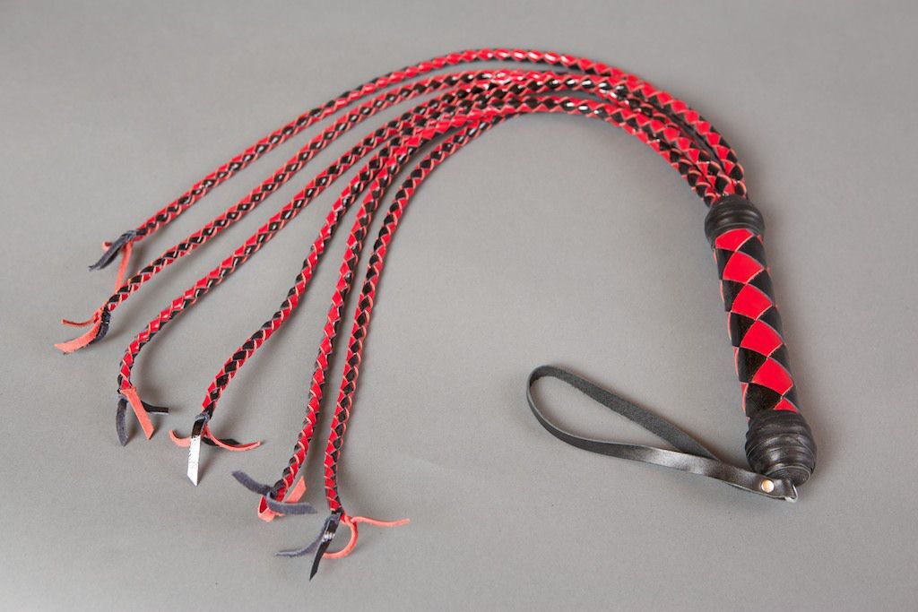Плеть многохвостка выполнена из лаковой натуральной кожи в черно-красной цветовой гамме. Состоит из плетенной ручки и 6 хвостов круглого плетения. Хвосты заканчиваются кисточками сплетенными особым способом без узлов. На рукоятке имеется петля для фиксации на руке. Имеет достаточно большую площадь соприкосновения с телом при ударе, но, по сравнению с флогером, оказывает более сильное воздействие при той же силе, так как имеет особое плетение хвостов. Применяется на уже разогретом теле. Длина ручки - 20 см.