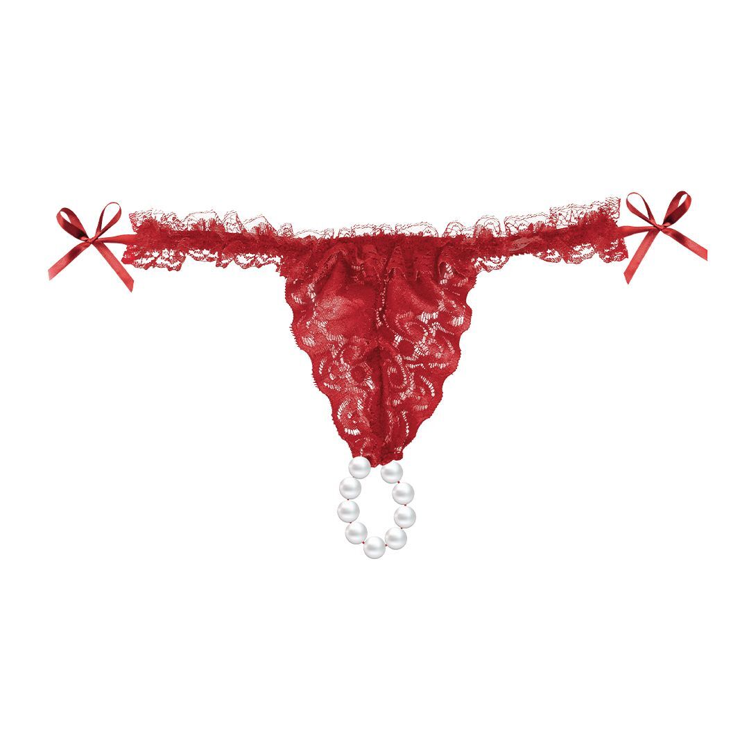 Красные трусики со стимулирующими бусинами и массажным гелем Sliding Gel Strawberry в комплекте