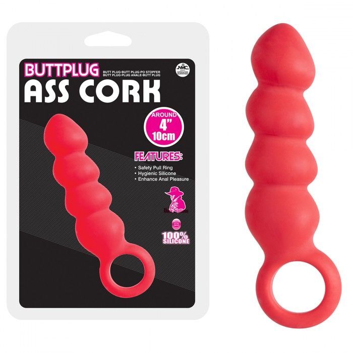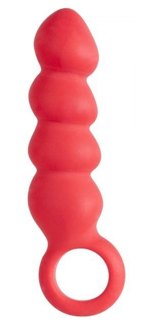Красный анальный стимулятор в форме ёлочки с кольцом