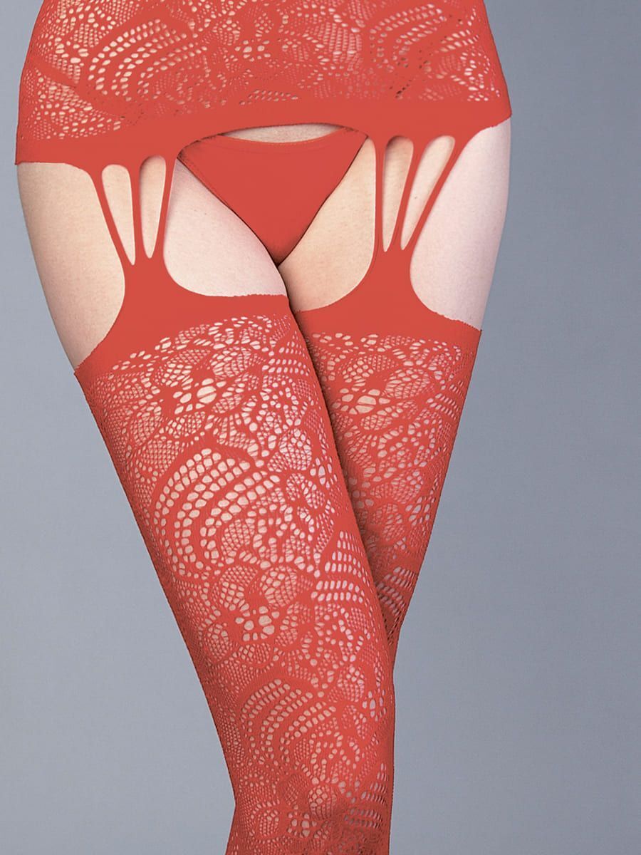 Красный ажурный комбинезон с имитацией чулок и шнуровки на груди. Благодаря универсальному крою кэтсьют замечательно сидит на любой женской фигуре, а интимный доступ позволяет не снимать костюм во время секса. Нежный, приятный на ощупь материал позволит вам чувствовать себя комфортно, а уникальный дизайн модели не даст отвести от вас взгляд. Благодаря уникальному пошиву и дизайну боди-комбинезон визуально стройнит фигуру, а также подчеркивает все самые аппетитные части тела. Трусики не входят в комплект!