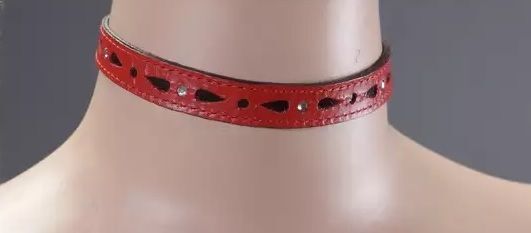Стильный, изящный ошейник из натуральной кожи превосходного качества. Оформлен россыпью страз белого цвета и каплевидным резным рисунком. Замок - липучка. Ширина - 1,5 см.