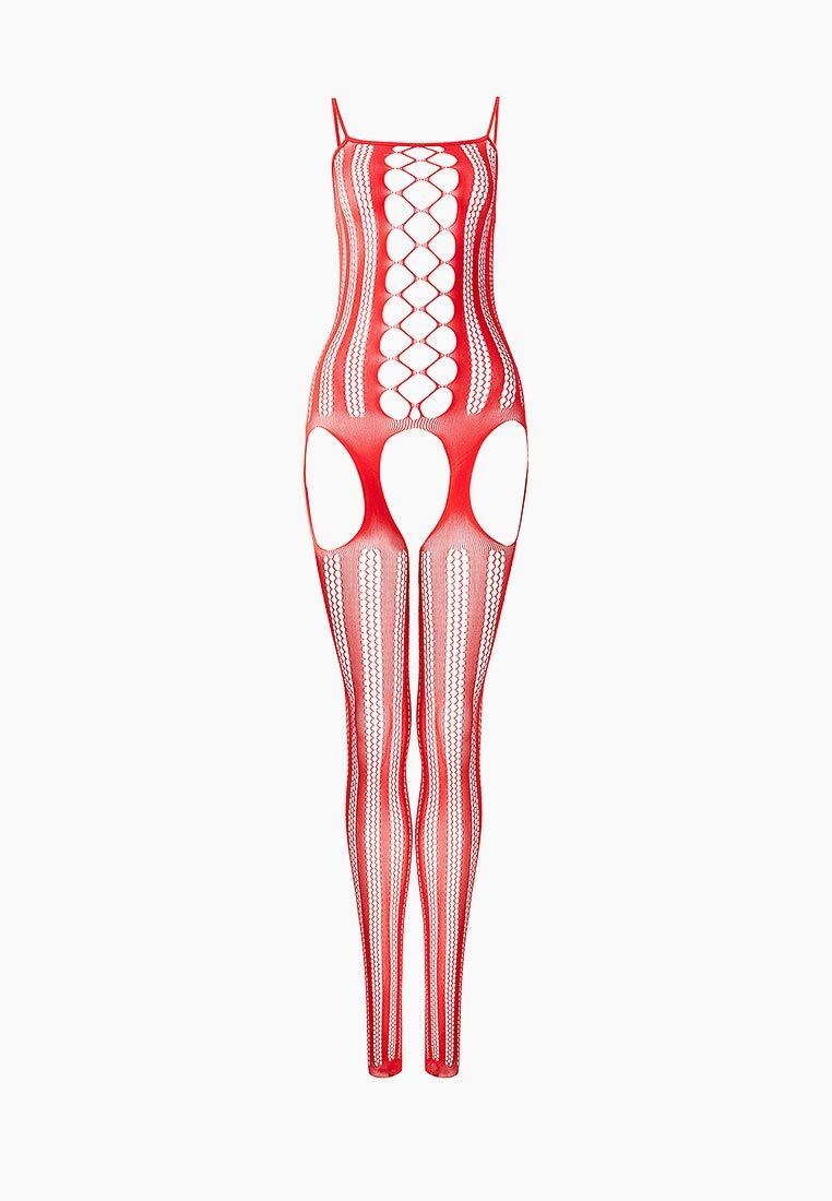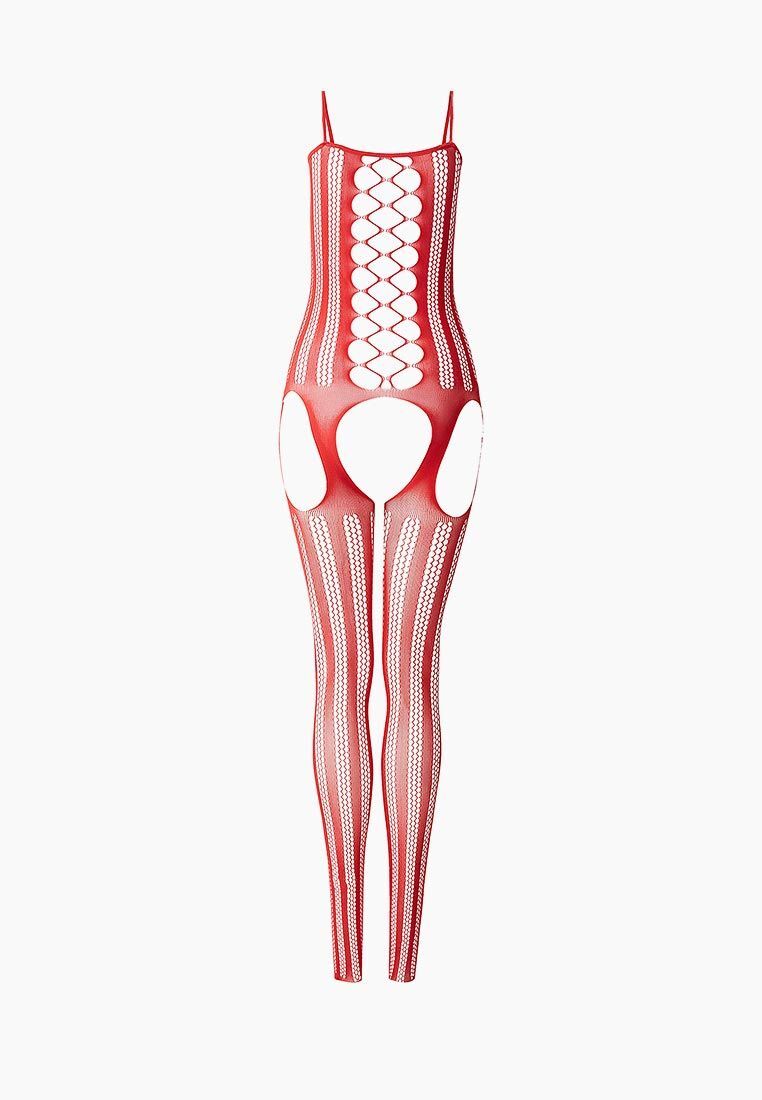 Красный комбинезон в крупную вертикальную полоску. С имитацией чулок и шнуровки на груди и интимным доступом. Нежный, приятный на ощупь материал позволит вам чувствовать себя комфортно, а уникальный дизайн модели не даст отвести от вас взгляд. Благодаря уникальному пошиву и дизайну боди-комбинезон визуально стройнит фигуру, а также подчеркивает все самые аппетитные части тела.