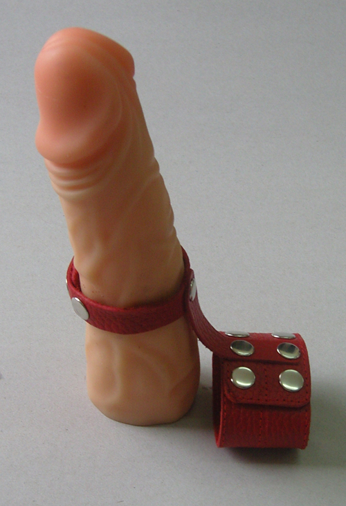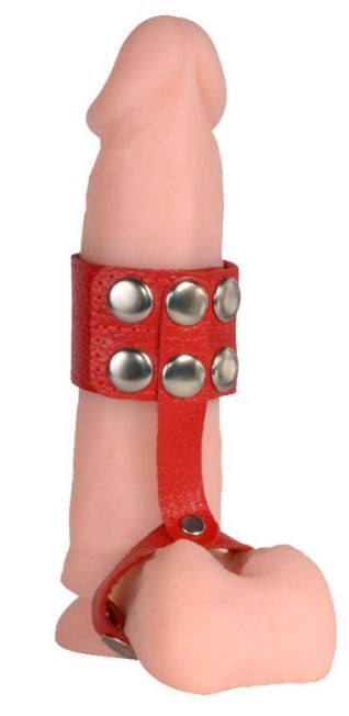 Красный кожаный поводок на пенис с кнопками