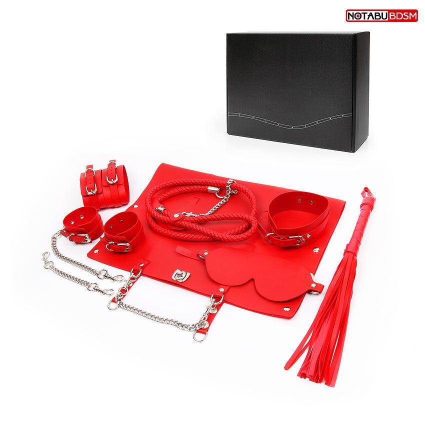 Великолепный набор аксессуаров для любителей БДСМ-игр. В комплект входят маска, фиксатор, ошейник с плетённым поводком, наручники, оковы, плеть. Наручники, оковы, ошейник и маску можно регулировать по размеру. При необходимости наручники и оковы скрепляются с помощью цепочек. В набор входит специальная сумка с ручкой-цепочкой для хранения интимных аксессуаров. В комплекте: маска, фиксатор, ошейник с плетённым поводком, наручники, оковы, плеть. Длина ручки плети - 15 см., хвостов - 23 см.
