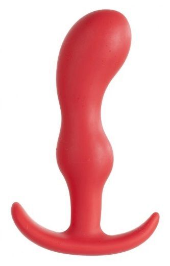 Красный мини-плаг из силикона для анальной стимуляции. Имеет изогнутую форму для удобного введения. Рабочая длина - 8,5 см. Диаметр от 1 см до 2,5 см.