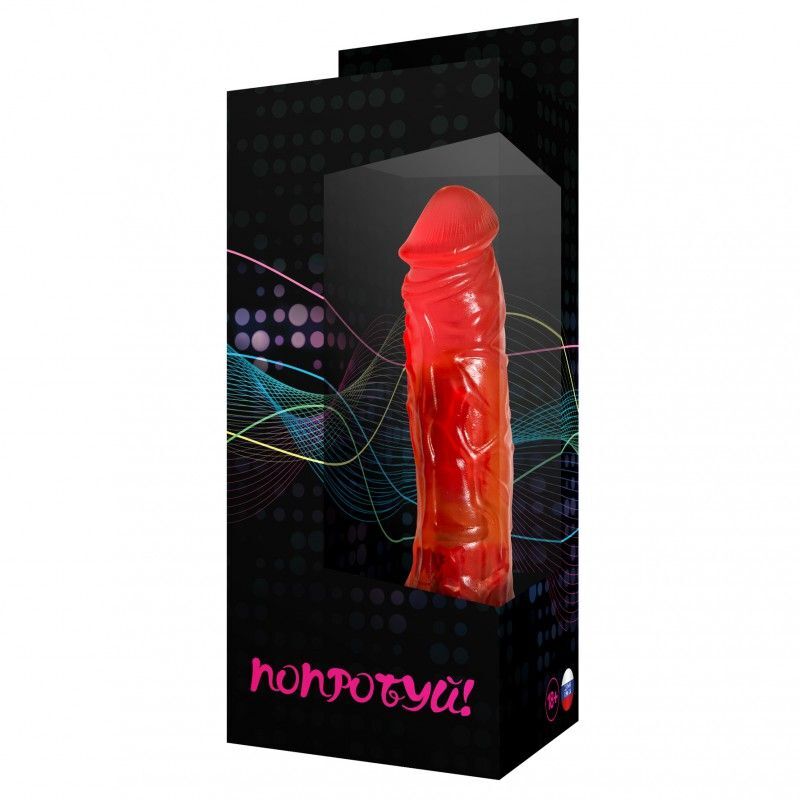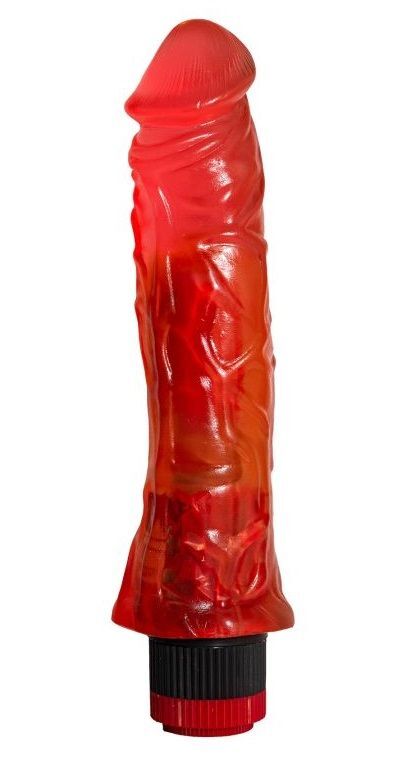 Вибромассажер со встроенным пультом управления. С выраженной головкой и рельефными венками. Степень вибрации регулируется при помощи колесика, расположенного в основании.