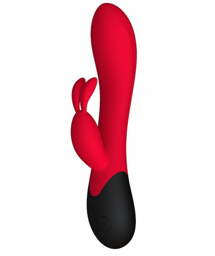 Красный вибратор Gemini с клиторальным стимулятором и нагревом - 20,8 см.