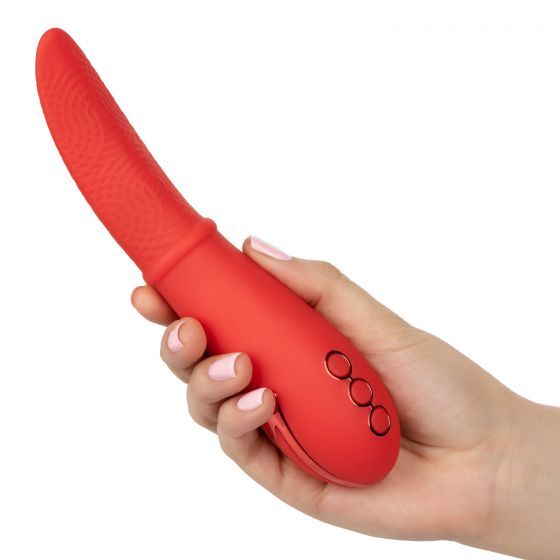 Вибромассажер Laguna Beach – перезаряжаемый мультискоростной универсальный вибратор из бесшовного материала с дополнительной обработкой. Эта модель имеет эргономичный дизайн с удобной ручкой и текстурированным кончиком, который имеет функцию «мерцающий язычок», имитирующую оральный секс, и функцию Power Boost, обеспечивающую мгновенный переход к супермощной вибрации. Мощный мотор обеспечивает 10 функций равномерной интенсивной вибрации, пульсации и эскалации и 3 скорости мерцания. Вибромассажер изготовлен из гипоаллергенного мягкого силикона премиум-класса безопасного для тела, не содержащего фталатов, обеспечивающего приятные и гарантировано безопасные тактильные ощущения. Подходит как для внешней, так и для внутренней стимуляции. Для комфортности введения и получения максимально приятных ощущений рекомендуем использовать смазку на водной основе. Управление осуществляется с помощью трех встроенных в основание кнопок. Чтобы включить или выключить игрушку, необходимо нажать и в течении трех секунд удерживать верхнюю кнопку питания. Имеется функция запоминания последнего выбранного режима. Доступна возможность блокировки, которая позволит предотвратить самопроизвольное включение игрушки во время путешествий. Вибромассажер заряжается через USB и может быть подключен практически в любом месте, просто подсоедините идущий в комплекте шнур к совместимому порту компьютера или USB-адаптера (приобретается отдельно), а противоположный конец к разъему у основания. Рабочая длина - 9 см. Время зарядки - 2,5 часа. Время работы - 2,5 часа.