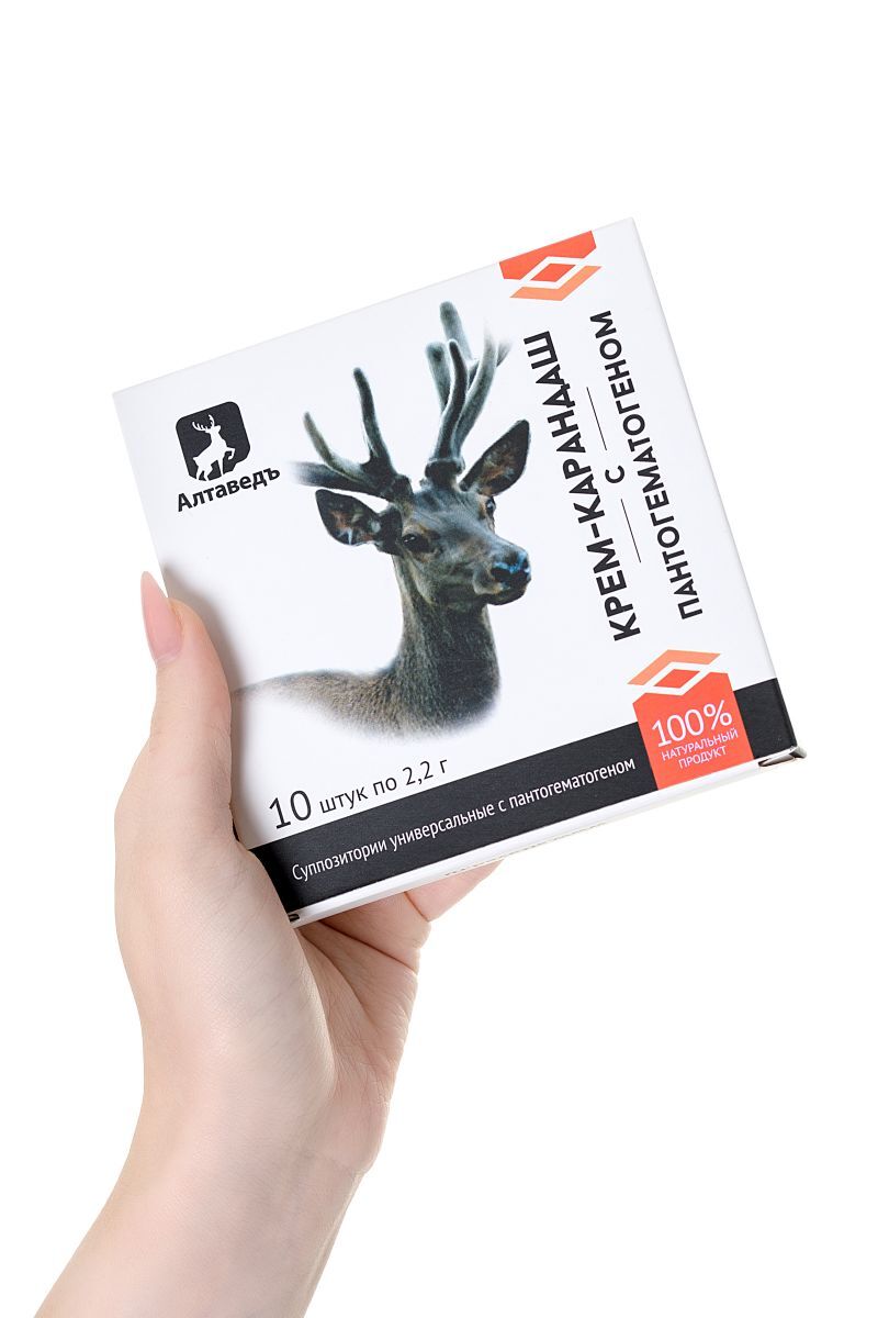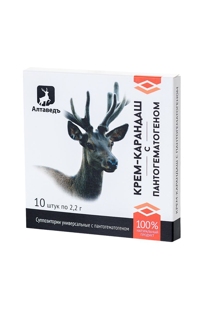 Крем-карандаш с пантогематогеном — натуральный комплекс активных компонентов, который препятствует возникновению симптомов простатита, купирует воспалительные процессы и способствует усилению потенции. Дополнительные свойства: обладает обезболивающим действием, является эффективным средством при геморрое, может использоваться как натуральный лубрикант. Основной компонент пантогематоген отвечает за восстановление внутренних резервов организма, снятие синдрома «хронической усталости», нормализацию обмена веществ и повышение иммунитета. Полностью натуральный состав: пантогематоген, мед, пчелиный воск, прополис, перга, масло какао, экстракт красной щетки, экстракт бобровой матки — сырье, используемое при производстве этого крем-карандаша выращено в экологически чистых предгорьях Алтая.