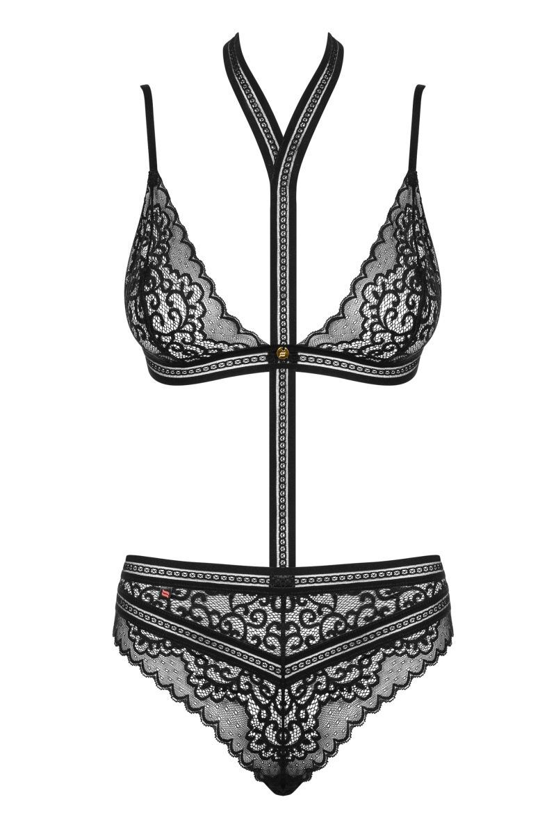 Кружевное боди Ailay с эффектным рисунком. Лиф мягкий без косточек, бретельки и застежка на спинке регулируются. Эластичный, съемный ремешок вокруг шеи отстегивается.