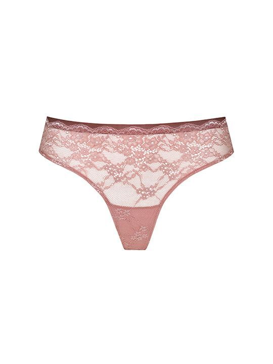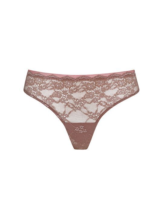 Трусы-бразилиана со средней посадкой талии, выполнены из кружева. Высота бока 5 см.