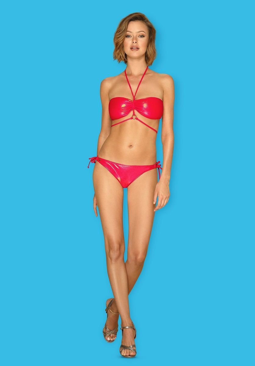 Это коралловое чудо с чрезвычайно чувственной огранкой заставит вас почувствовать себя по-настоящему обворожительной. Перед вами сексуальная стилизация, более согревающая, чем солнце. Бикини из блестящего материала гарантирует, что подчеркнет все ваши соблазнительные формы! Носите его с элегантным парео и женственными туфлями на высоком каблуке - это все, что вам нужно, чтобы произвести впечатление на любимого, развлекаясь в бассейне. Застежка на спине, шнуровка сзади - заманчивый аспект этого купальника. Декоративное кольцо. Бретельки выше талии прекрасно украшают тело. Завязки по бокам - акцент на бедрах. Приятный на ощупь и эластичный материал . В комплекте: лиф, трусики.